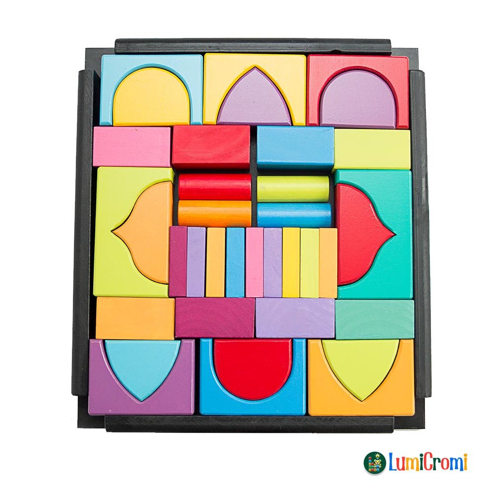 El set Persia invita a crear palacios, templos, murallas o cualquier construcción que la imaginación proponga. Con sus 37 piezas grandes inspiradas en la arquitectura oriental, combina belleza y libertad creativa. Cada bloque encastra con suavidad, ofreciendo una experiencia sensorial y constructiva única.