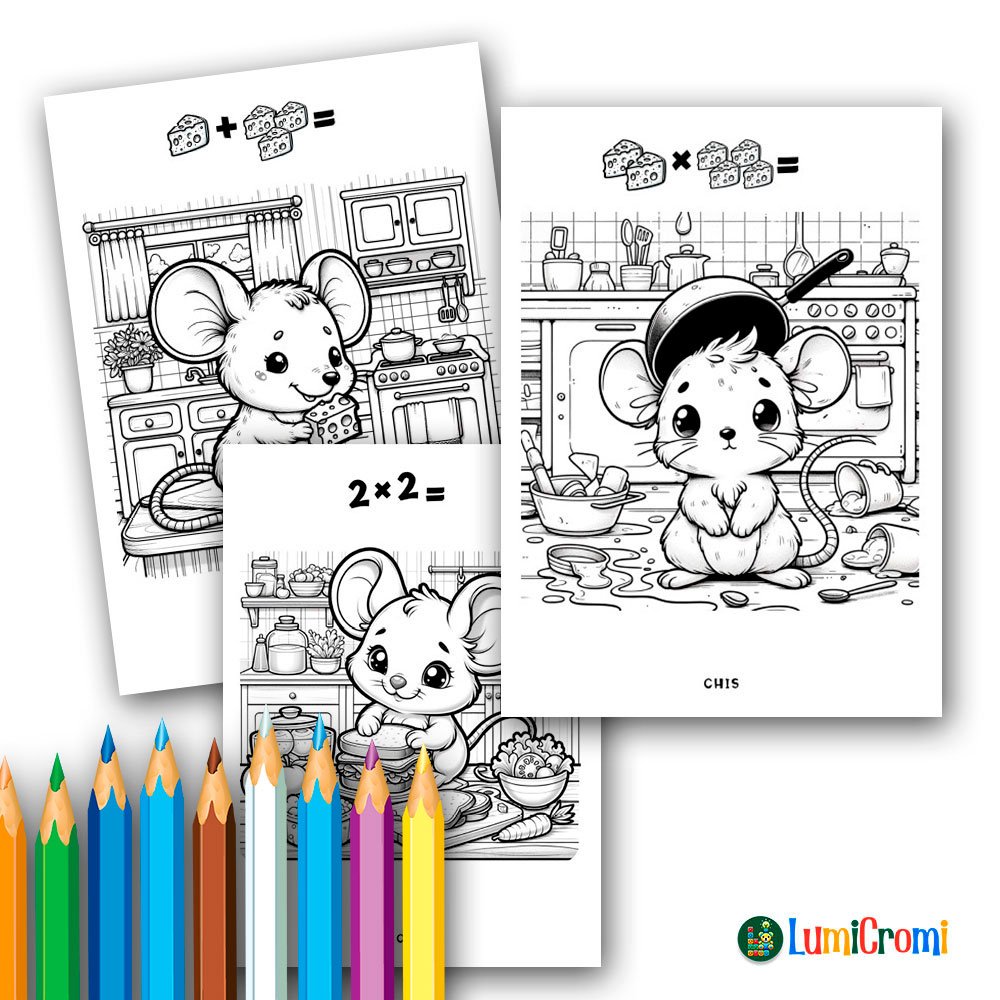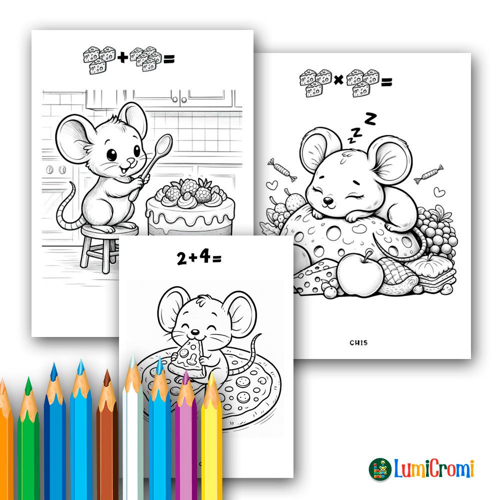 Un librito digital para imprimir, lleno de dibujos adorables y desafíos matemáticos que invitan a sumar, restar y pintar con alegría. Ideal para peques que aprenden jugando. 🧮🐭🎨
